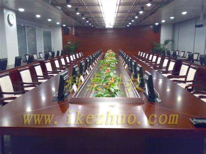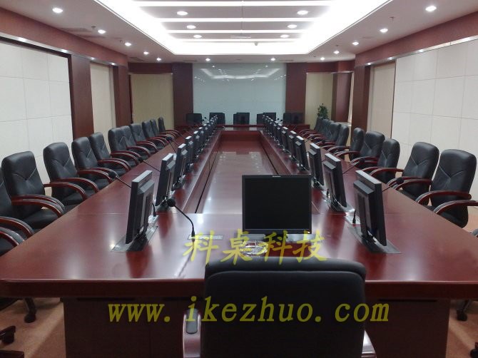 本產(chǎn)品◆主要用于大型會議室,◆學術(shù)報告廳,◆展廳內(nèi)。◆當開會時,◆需要使用顯示器時,◆隱藏在會議桌內(nèi)部◆的升降機把顯示器